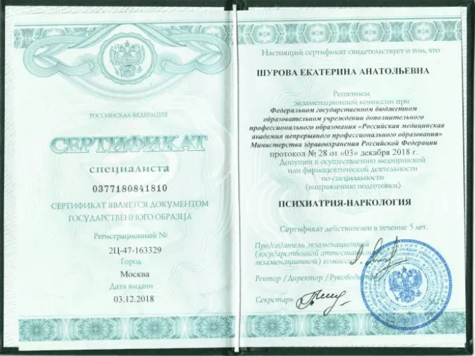 Шурова Екатерина Анатольевна - врач нарколог, стаж 14 лет. Все отзывы о враче. Запись онлайн или по телефону.